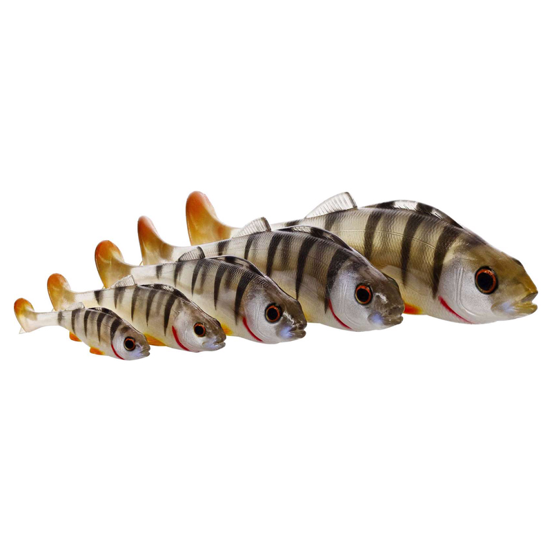 La forme dynamique de l'Original Perch a ensuite été affinée par l'ajout d'ailerons externes pour lui donner un aspect plus réaliste. Combiné avec la finition peinte à la main incroyablement réaliste, l'Original Perch s'est avéré irrésistible pour les poissons prédateurs dès le début, et sa réputation a grandi au niveau international au fur et à mesure que le design s'est développé et a été adopté par les pêcheurs aux leurres dans le coup''.
