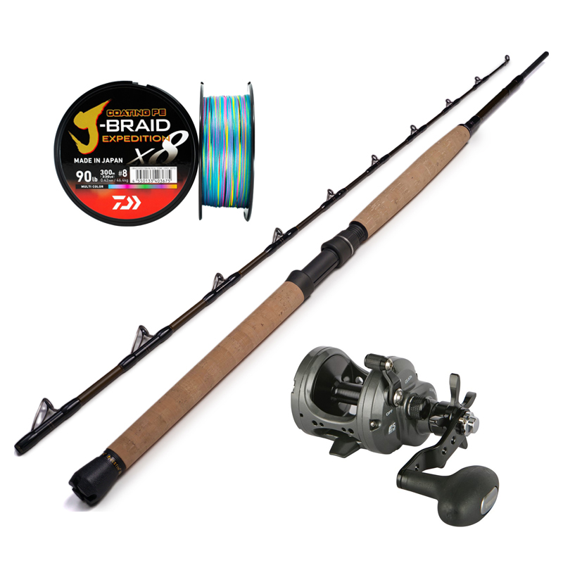 Ensemble de pêche en mer puissant avec canne robuste, moulinet fiable et tresse haut de gamme.