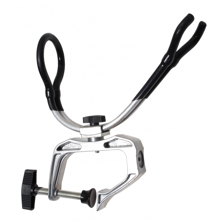Porte-canne avec serre-joint à vis. A un support fixe à l'arrière et à l'avant, réglable dans le montage.